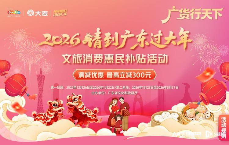 自2025年12月26日第一阶段活动启动以来,以实质的优惠福利与高品质服务赢得广泛好评,有效激活春节前文旅消费市场。为进一步满足春节、元宵及节后错峰出行需求,第二阶段活动于2026年1月23日正式启幕,福利覆盖持续延伸、服务保障不断升级,诚邀海内外宾朋共赴岭南暖冬之约,畅享地道新春年味。南都记者整理了一份广东过大年的“实惠”指南。